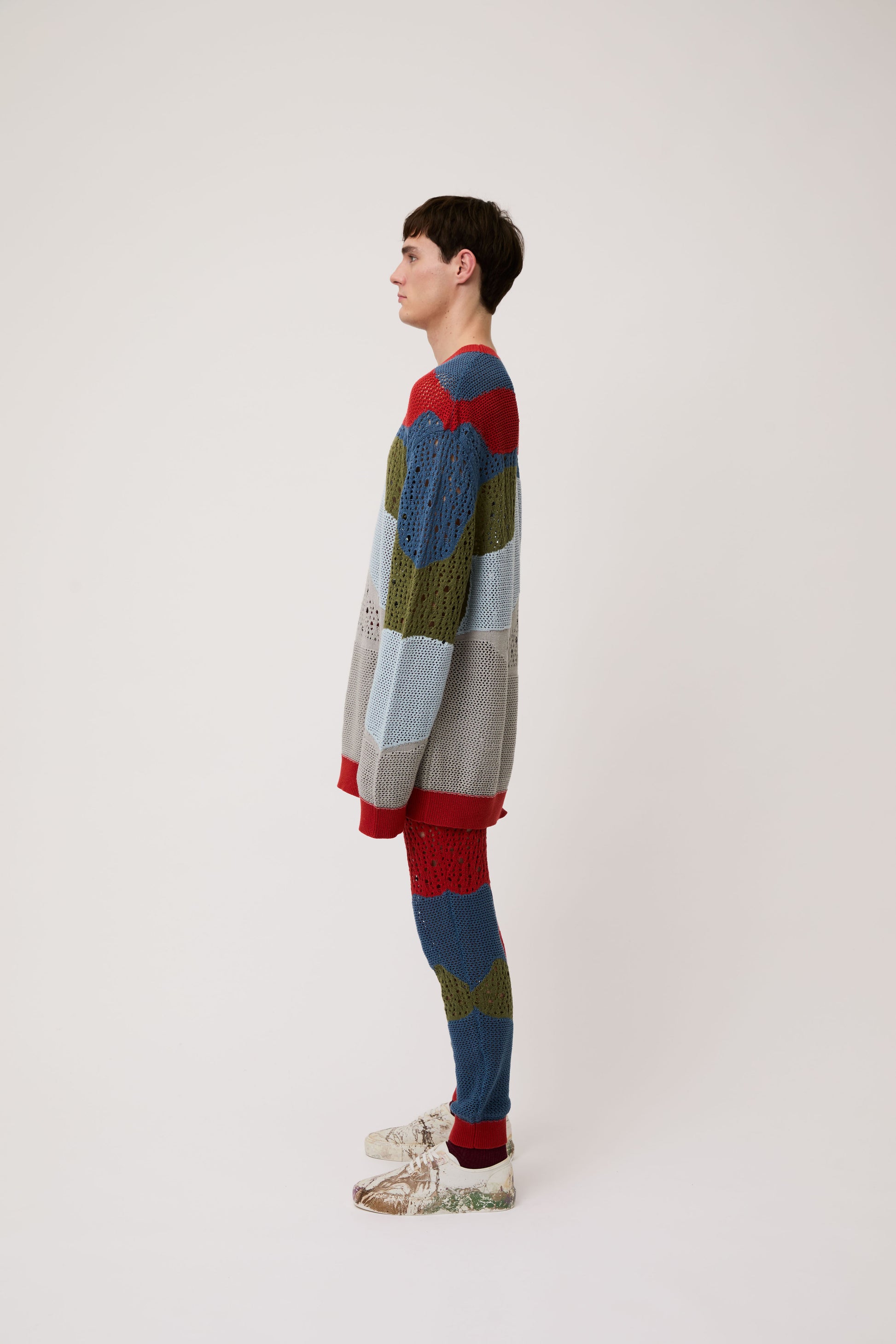 A cotton jumper crafted with an open-knit technique that evoke the delicate structure of petals and water ripples.